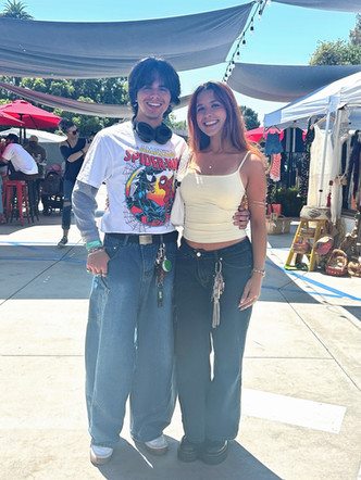 PHOTO 1: Fuddy Duddy Vintage offers a booth jam-packed with vintage clothing and unique trinkets. PHOTO 2: Wild Horses Vintage features the vintage curations of six to seven different vendors. PHOTO 3: Mercado Blanco Thrift has an extensive collection of early-2000s clothing and accessories. PHOTO 4: Lupe “Lupita” Navarro runs Crafty Catrina, selling handmade earrings, pins, bracelets, journals and more, inspired by American and Mexican pop culture. Photos by Lola Olvera, Culture OC