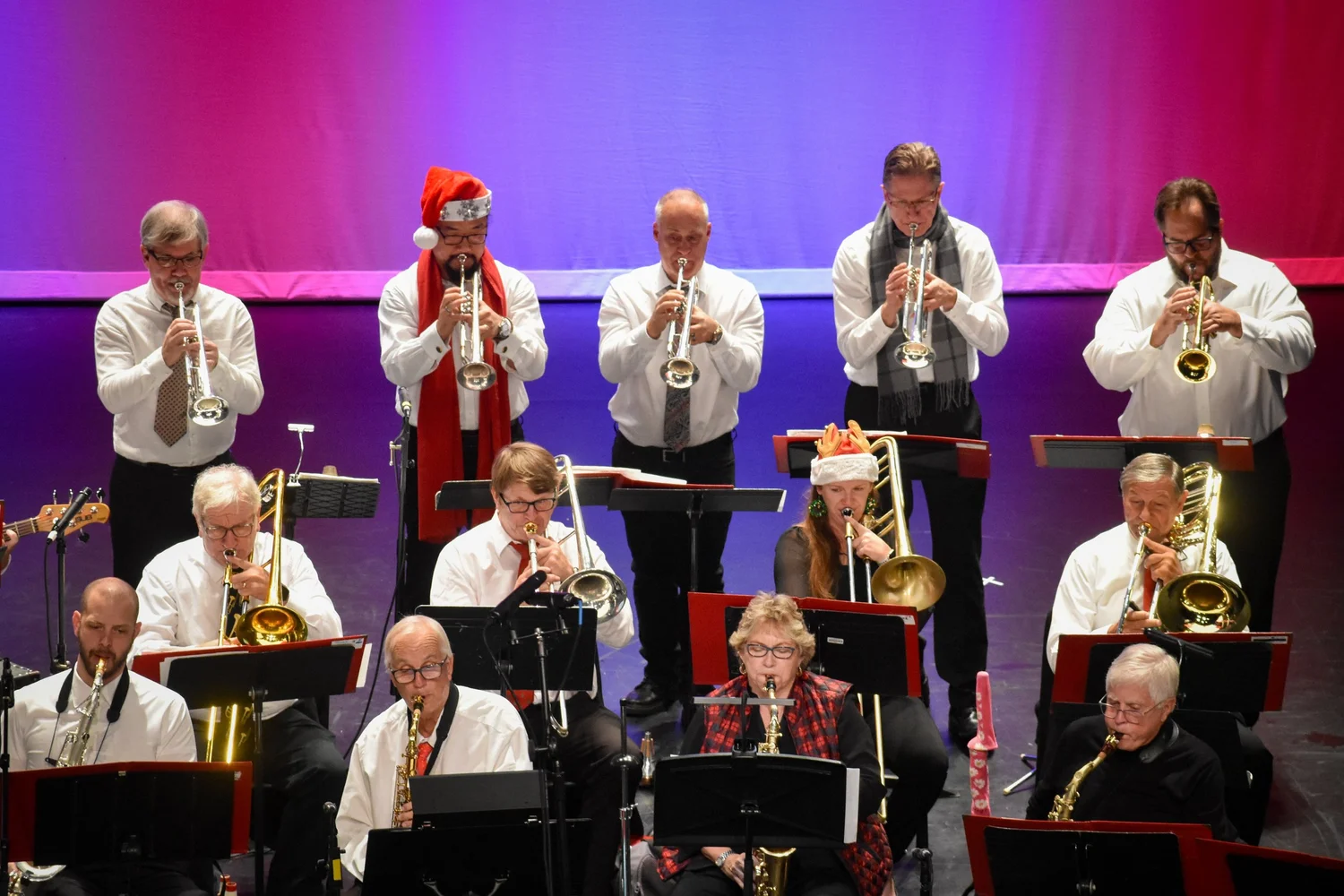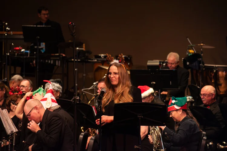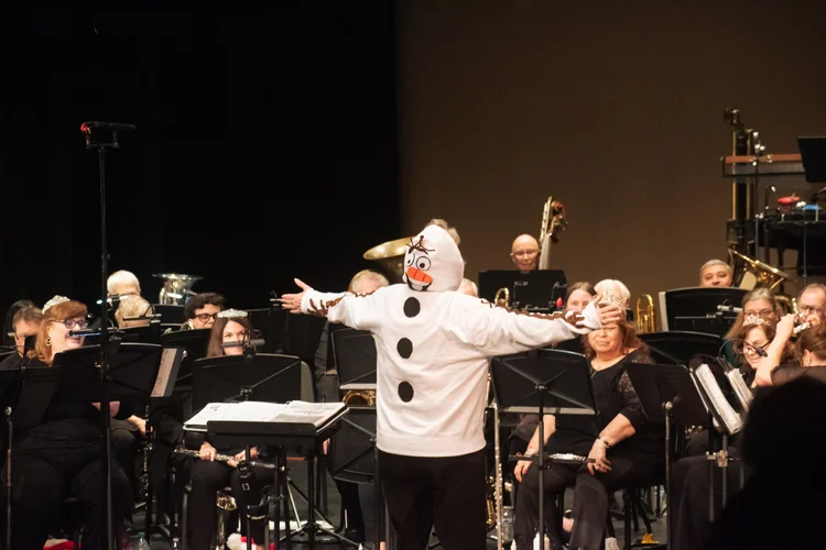 Program: “Let’s Go to the Movies” theme with some pieces including “Overture to Miracle on 34th Street,” “Baby It’s Cold Outside” with a bari sax and clarinet duet, “Auld Lang Syne” featuring a solo flugelhorn, “Sleigh Ride,” “Home Alone,” “A Charlie Brown Christmas” and “The Polar Express”