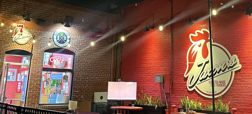 Indoor, top, and outdoor seating at Jaxon's Chicken. Photos by Laila Freeman, Culture OC