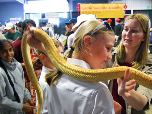 PHOTO 1: A child learns about veterinary science. PHOTO 2: Animal interactions are a regular part of the festival, including moments with reptiles like snakes. PHOTO 3: Few things are as thrilling as learning something new, whether it’s educational or a physical feat like aerial silks. PHOTO 4: Kids can make images on a life-sized Lite-Brite. Photos courtesy of OC Fair & Event Center