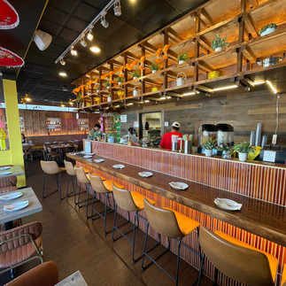 The interior of Chiang Rai in Tustin. PHOTO 1: The banquette. PHOTO 2: An artful inset wall display. PHOTO 3: The bar.