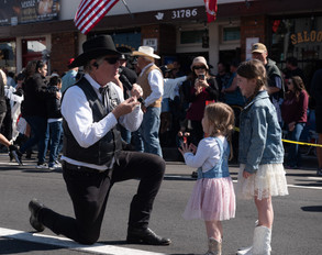 PHOTO 1: The Swallows Day Parade is one of the largest non-motorized parades in the nation with the parade mostly consisting of horse carriages, horse-driven floats and wagons. PHOTO 2: Robert Ridland, a 1976 jumping equestrian Olympian, was the Swallows Parade's grand marshal in 2023. PHOTO 3: San Juan Capistrano Fiesta Association president Jim Taylor is known to walk out on the street during the parade and interview participants. Photos courtesy of the San Juan Capistrano Fiesta Association