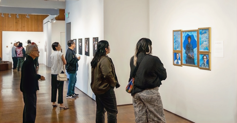 Visitors look at artworks during the opening reception for "Alisa Ochoa: Splinters" and "Swing Shift" at the Irvine Fine Arts Center. Photos courtesy of city of Irvine